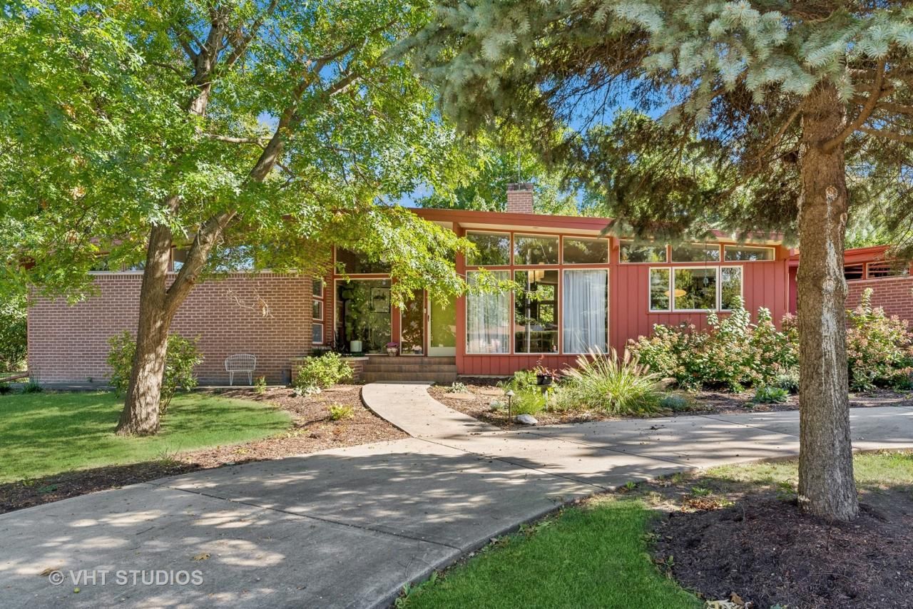 ** Due to high interest level and offers that we've received or have been told to expect, please submit your Highest & Best offer no later than 12pm Noon on Tuesday, October 15th, thank you! ** Wow! It's not often that you can find a California-style MCM ranch like this one in the Chicago suburbs! You'll love this long-gable roofline and how it affords vaulted ceilings in nearly every space. And there are SO many wonderful mid-century modern features to love in this house, including: A wonderful, open floor plan, beautiful, exposed brick; many clerestory windows, original or period-appropriate lighting, real hardwood parquet flooring, a fantastic sunken Living Room with angled 2-sided fireplace and massive brick surround, open but separate Dining Room, original cabinetry in the kitchen & bathrooms including original hardware, original tile & fixtures in the bathrooms and more. Three bedrooms and two full baths, including a private en-suite bath for the Primary Bedroom make this a great home with an efficient layout in true MCM fashion. Plus, other great features such as a large, main level laundry & mud room for true ranch living! There's a large partial basement perfect for storage, kids playroom, hobby area, workout space, home theater, etc. Outside, you'll enjoy the gorgeous, private, interior lot of nearly 1/2 acre with many mature trees, a large patio area, beautiful landscaping and a semi-circle driveway, too. MANY upgrades over the last few years, too, including new roof coatings on both the main and garage roof (the roof itself was a new tear-off roof just 10 years ago), refinished floors, new water heater, radon mitigation system and carpet in bedrooms (all in 2022); new electric panel, exterior repainted, professional landscaping (all in 2021) and converting the fireplace to gas in 2023. Don't miss the opportunity to make your MCM dreams come true!