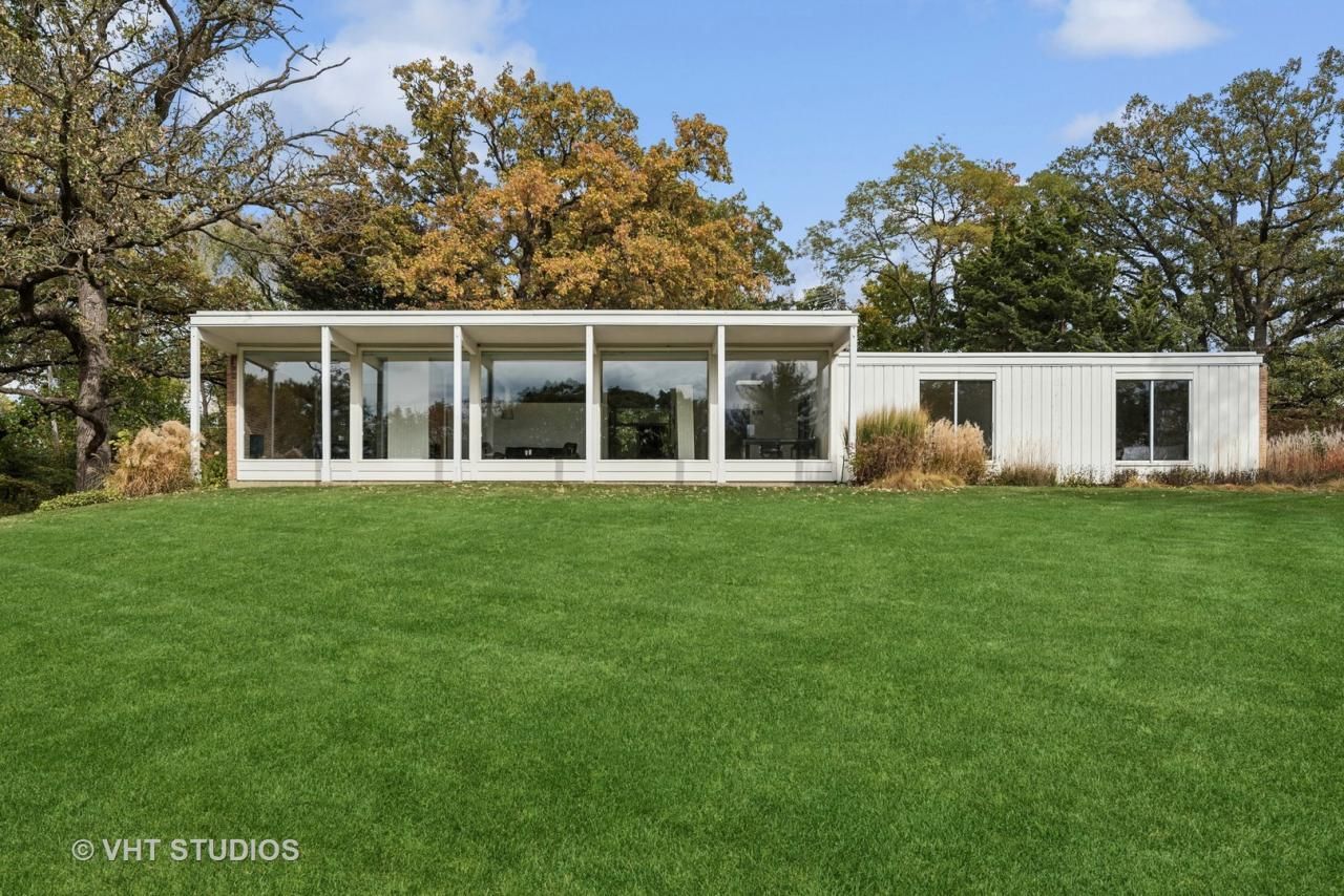 ** Multiple offers received. Highest & Best offers should be submitted no later than 12pm Noon Central Time on Monday, October 28th. ** Wow! Even among MCM homes, this beautiful 1965 mid-century modern ranch designed by John Schmidtke stands out! Sited atop a hill on what is arguably the best lot in Elgin's desirable Sherwood Oaks subdivision, this beautiful International Style modern home is both elegant and sophisticated. Walls of Chicago Common Brick are interspersed with glass and cedar to create a home that is full of light and beautiful, natural materials. A large, eat-in kitchen with dinette space features original cabinets & hardware and walls of glass on two sides, including looking into and through the sun room, with its huge sliders. Along the front of the house with its massive 100 x 100 windows, are the dining room and living room, separated by a brick fireplace, and the den, separated from the living room by a bookshelf wall. These three spaces flow beautifully from one to another, and all take advantage of the amazing wall of windows and natural light looking southwest under a significant overhang that spans the width of the window wall and offers passive solar properties. Both the hall bath and the en-suite bath in the Primary Bedroom feature their original floating cabinetry and hardware, as well as tile and some fixtures. Both the Primary and Second bedrooms face out the front of the house, across the generous front lawn overlooking all the beautiful, mature trees in the neighborhood. And the Primary bedroom includes a large walk-in closet for excellent storage. Remarkably for a modern home of this era, there's a large walk-in closet for storage on the main level, as well as a spacious laundry room, so that all day-to-day needs are met on the main level, offering true ranch living. Two additional walk-in closets on the main level offer excellent storage within easy reach as well. Take note of the fantastic architectural details in the house, such as the way the door framing is done, and you'll realize just how special this home is. A two-car garage rounds out the main level, and the home also has a partial basement for even more storage or space for a rec room or an exercise, hobby or home theater area. Outside, you'll enjoy the nearly 1-acre lot surrounded by and peppered with mature trees and offering views of nature all around. Sherwood Oaks is a hidden gem within Elgin, with its winding streets, hills, and endless natural beauty. In just 10 minutes, you can be on I-90 or at South Barrington's Arboretum area with all of its dining and shopping options. This is a wonderful example of modern architecture for the discerning buyer looking for an architect-designed home in a beautiful, quiet, natural setting at a fantastic price. Don't let this one slip away!